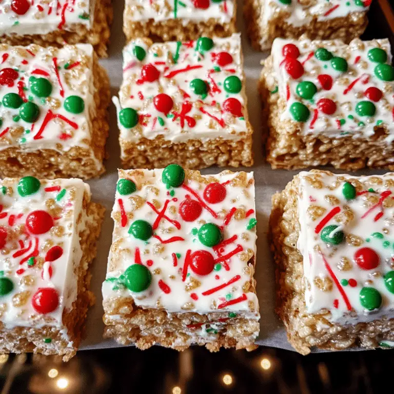 I first made these Christmas Rice Krispie Treats when I was looking for an easy holiday treat that could be made in a flash. With just a few simple ingredients—Rice Krispies, marshmallows, and butter—I was able to whip up a batch in no time. The addition of holiday-themed decorations made them look so festive and special. What I love most about this recipe is how versatile it is: you can change up the colors and mix-ins depending on the occasion, or even drizzle some melted chocolate on top for an extra indulgence. These treats are a guaranteed hit at any holiday gathering!
