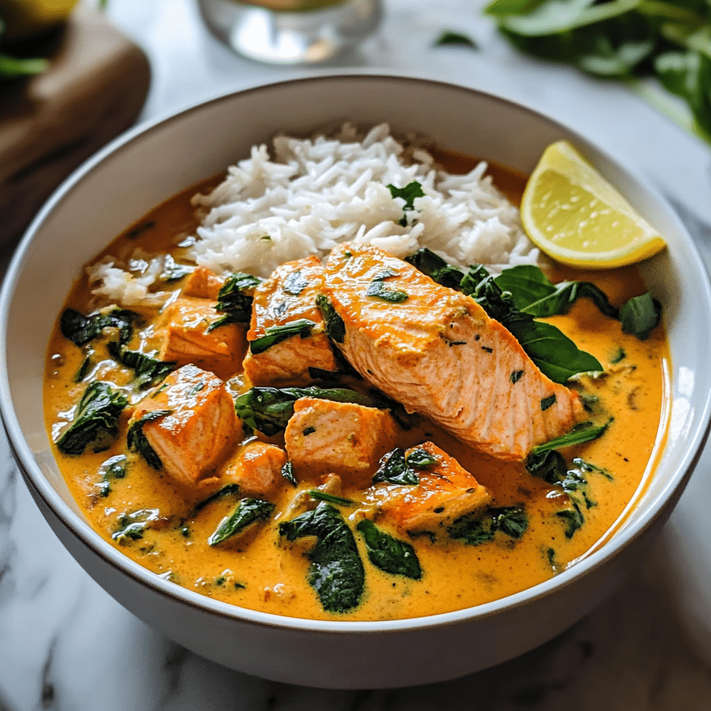 The first time I made this, I needed something quick but still packed with flavor, and Coconut Salmon Curry became an instant hit! The salmon absorbs the vibrant flavors of the curry while staying perfectly tender, and the sauce has just the right blend of creaminess, spice, and citrusy tang. What I love most about this dish is how easily it comes together in just 30 minutes, making it ideal for busy nights when you want something nourishing and satisfying. Plus, it’s versatile—you can adjust the spice level or toss in some veggies like spinach, bell peppers, or zucchini for extra nutrition!