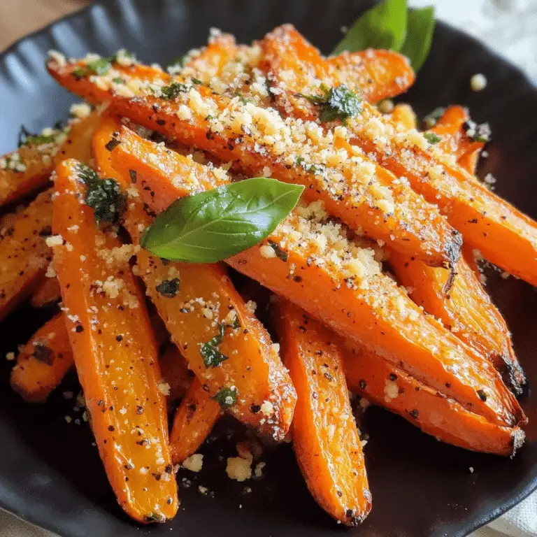 Garlic Parmesan Basil Roasted Carrots are a vibrant, flavorful side dish that transforms simple carrots into a sophisticated, irresistible delight. Roasted to a perfect golden hue, each carrot slice is coated in a crispy, garlicky, Parmesan crust, while fresh basil adds a fragrant, herbaceous finish. It’s a dish that balances crunch and tenderness, savory and aromatic notes, and is sure to become a favorite on any dining table.