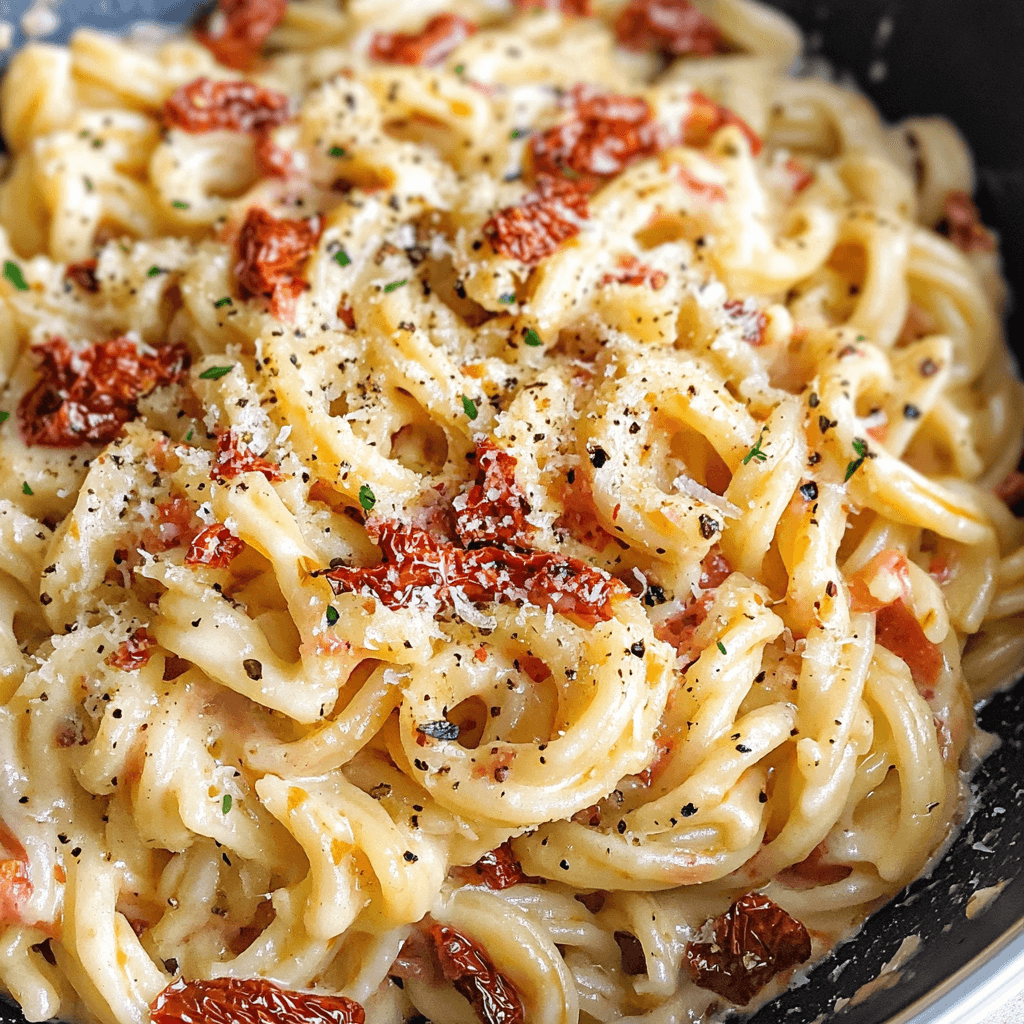 The first time I made this, I was craving something creamy yet vibrant, and this pasta delivered in every way. The sun-dried tomatoes infused the sauce with an irresistible depth of flavor, while the pasta cooked right in the same pan, soaking up all the deliciousness. A sprinkle of fresh basil and extra Parmesan on top made it absolutely perfect!