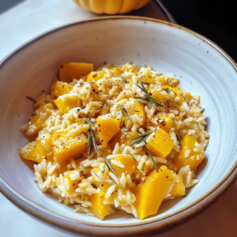 This Orzotto with Winter Squash and Rosemary is a cozy, creamy take on traditional risotto, showcasing the perfect blend of seasonal flavors and comfort. Tender orzo pasta is slowly simmered with roasted winter squash, fresh rosemary, and a touch of Parmesan, creating a rich, velvety dish that warms your soul with every bite. The subtle sweetness of the squash pairs beautifully with the earthy rosemary, while the Parmesan adds a delightful, salty finish. Ideal for chilly evenings, dinner gatherings, or a comforting solo meal, this orzotto is a true celebration of winter’s bounty.