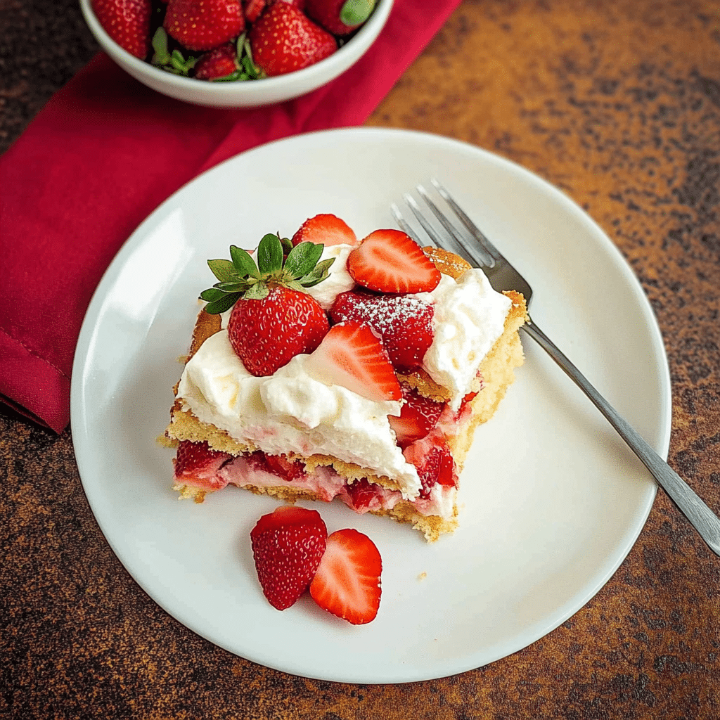- Slice the Strawberries Thinly: For a more elegant presentation, slice the strawberries thinly so they layer neatly on the cake.